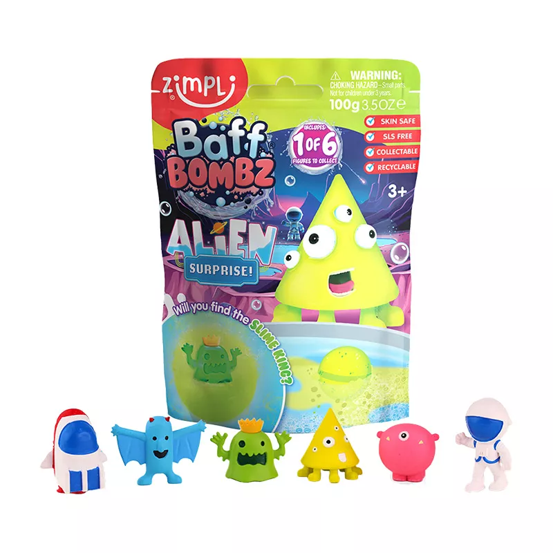 Convierte la hora del baño en una auténtica misión espacial. Al colocar la bomba en el agua, comienza a burbujear y a liberar un colorido efecto que despierta la curiosidad… hasta que aparece la gran sorpresa: ¡una figura alienígena escondida en su interior! Cada bomba incluye 1 figura sorpresa de una colección de 6 aliens diferentes, lo que hace que cada baño sea distinto y emocionante. Ideal para peques a los que les encantan las sorpresas, los personajes misteriosos y los juegos de colección.A partir de 3 años