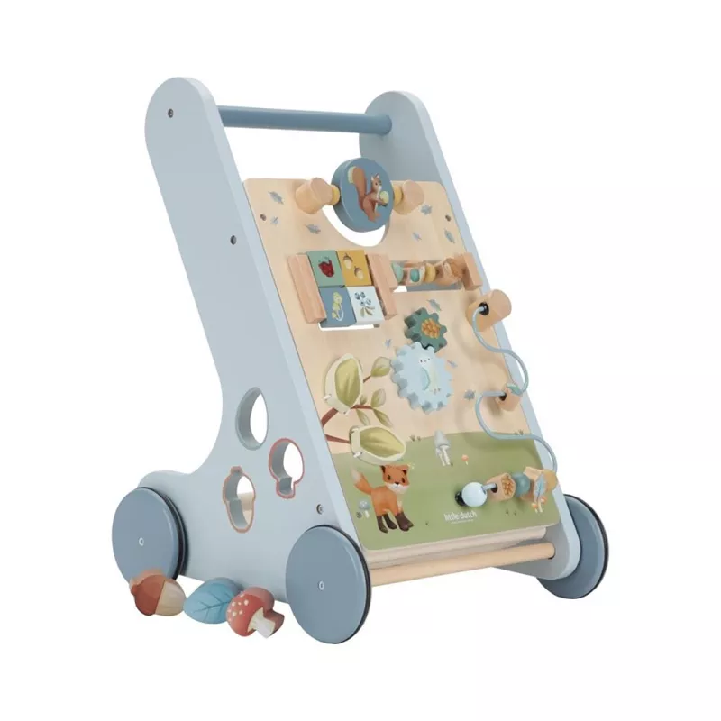 ¡Camina, juega y aprende! Con este bonito andador de madera, en colores suaves e ilustraciones inspiradas en el bosque, los pequeños descubrirán 8 actividades que les animarán a desarrollar su motricidad fina jugando: piezas encajables, laberintos, engranajes, cuentas deslizables… Un andador, con un diseño robusto, perfecto para dar sus primeros pasos de forma segura y divertida.A partir de 12 meses