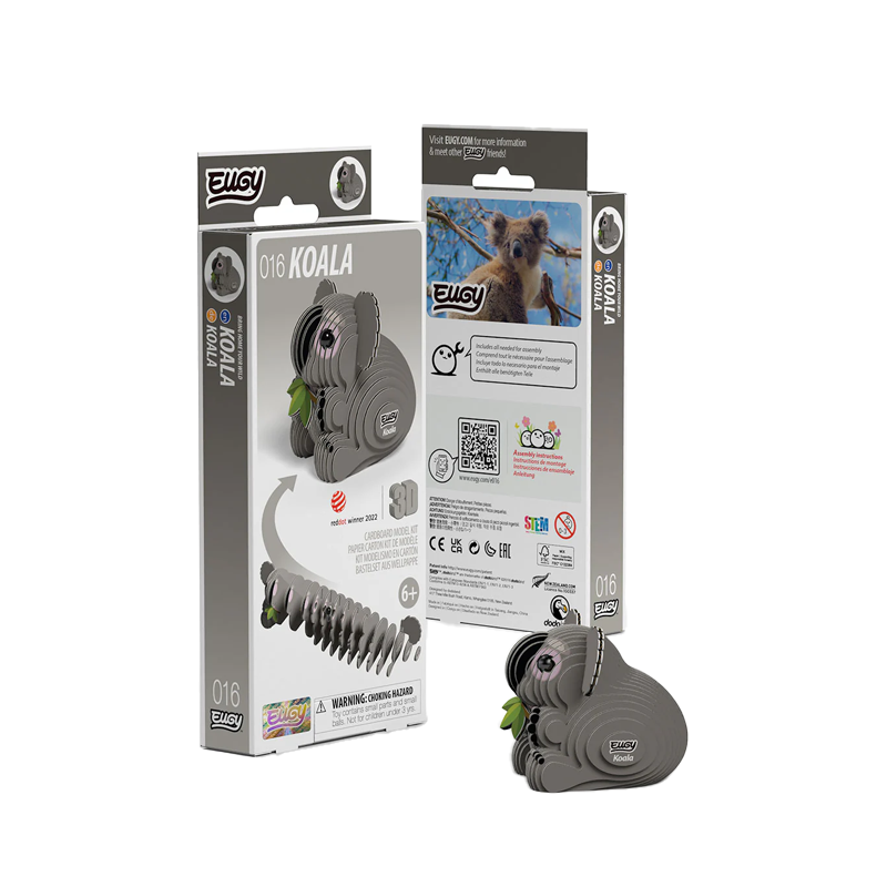 Los Eugy son figuritas coleccionables, súper adorables, muy sencillas de construir para los más pequeños. Cada pieza está numerada para ir superponiendo una encima de la otra, con la ayuda de la guía y el pegamento orgánico que viene incluido. El resultado será un bonito koala, perfecto para jugar o decorar cualquier rincón de su habitación. ¡Hay muchos modelos más para coleccionar!De 6 a 99 años