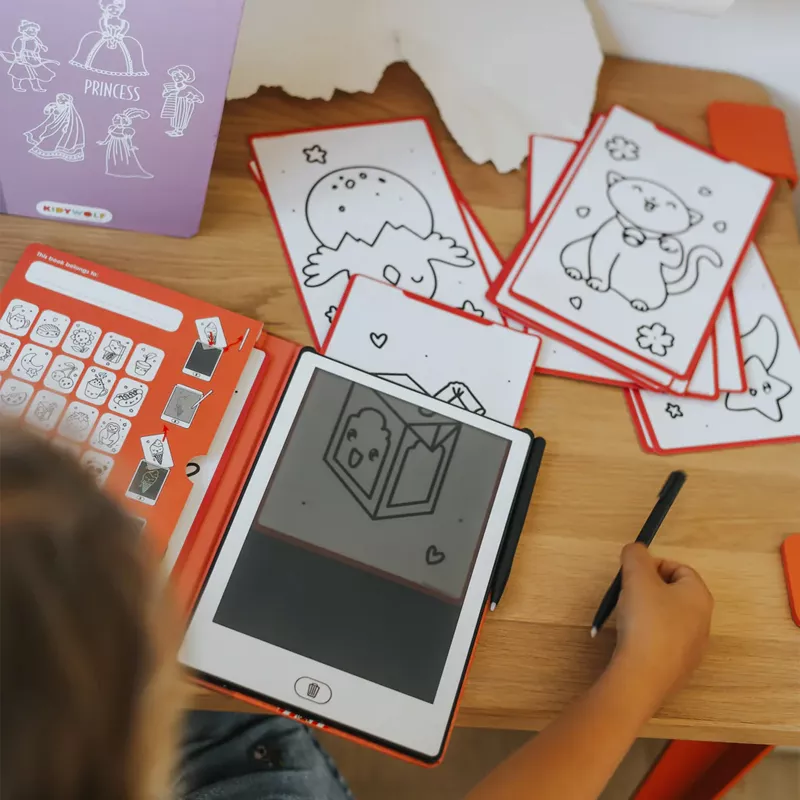 ¡Una tableta de dibujo para llevar e inspirarte a todas partes! Con Kidydraw los pequeños podrán dar rienda suelta a su imaginación dibujando lo que más les guste, podrán practicar el trazo de letras y números o bien podrán calcar los dibujos adorables de las 30 tarjetas de la temática kawai que incluye. Una tableta mágica con pantalla LCD para crear trazos multicolor, muy fácil de usar para los más pequeños.A partir de 4 años