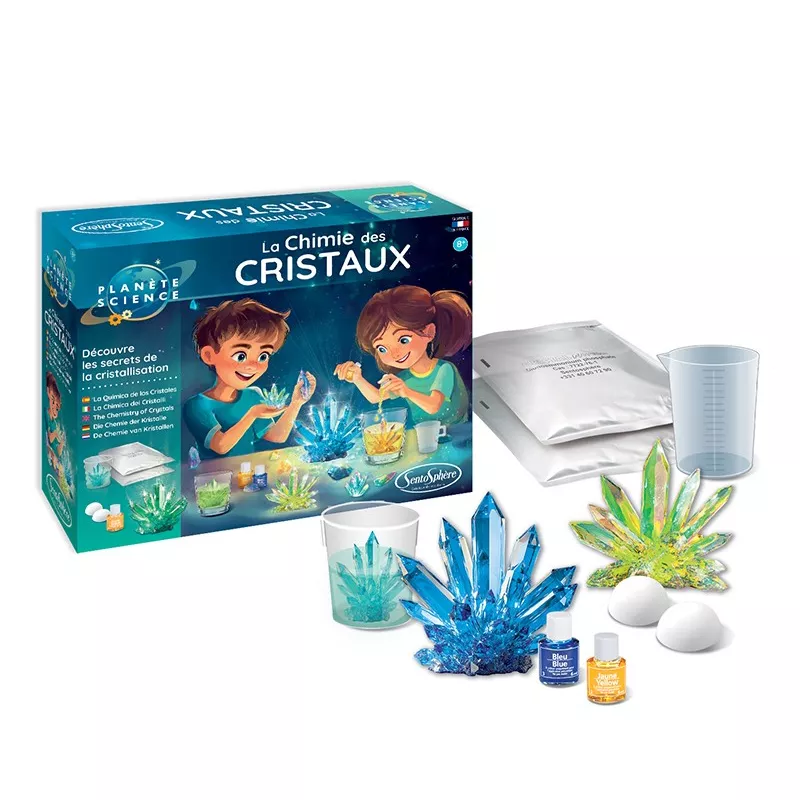 ¡Diviértete creando sorprendentes cristales de colores! Con este fantástico kit de ciencia, podrás ver cómo crecen día a día estos maravillosos cristales de colores. Conoce de cerca el complejo fenómeno de la cristalización y descubre cómo se crean las piedras preciosas en el centro de la Tierra. Además, gracias a los tintes, podrás darles el color que prefieras: esmeralda, citrina o aguamarina. Una vez crezcan, serán una bonita decoración para la habitación.A partir de 8 años