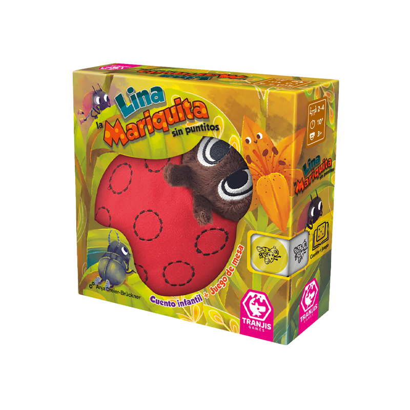 Érase una vez una mariquita sin puntitos llamada Lina, que decidió aventurarse a llenar su espalda de color. Durante su viaje, ayuda a sus amigos del bosque mágico que, como agradecimiento, le dan un toque de color en forma de puntitos. Así, Lina se vuelve a ser una mariquita multicolor llena de alegría. ¡Qué bonito es ayudar! El juego nos invita a leer el cuento con todas las personas que vayan a jugar. Así, según Lina consiga puntitos en el cuento, habrá que colocar puntitos de velcro sobre la espalda del peluche, que tendremos en nuestra muñeca. ¡Lanza el dado, coloca los puntitos de colores en la espalda de Lina y pásala la siguiente jugador!A partir de 3 años