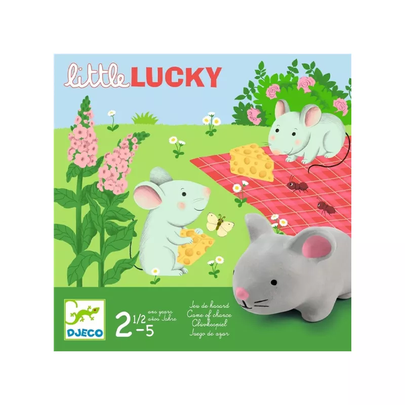 La colección de juegos Little ha sido creada para acercar a los más pequeños al mundo de los juegos de mesa de forma divertida. Little Lucky es un juego de memoria y azar en el que nuestros pequeños ratoncitos competirán para atrapar el mayor número de trozos de queso. Pero, para avanzar en el recorrido, tendrán que descubrir qué color se esconde bajo la siguiente casilla que se les presenta. Quién llegue antes al final del recorrido, se lleva un trozo de queso. ¡El primero que consiga 4 quesitos gana la partida!De 2 años y medio a 5 años