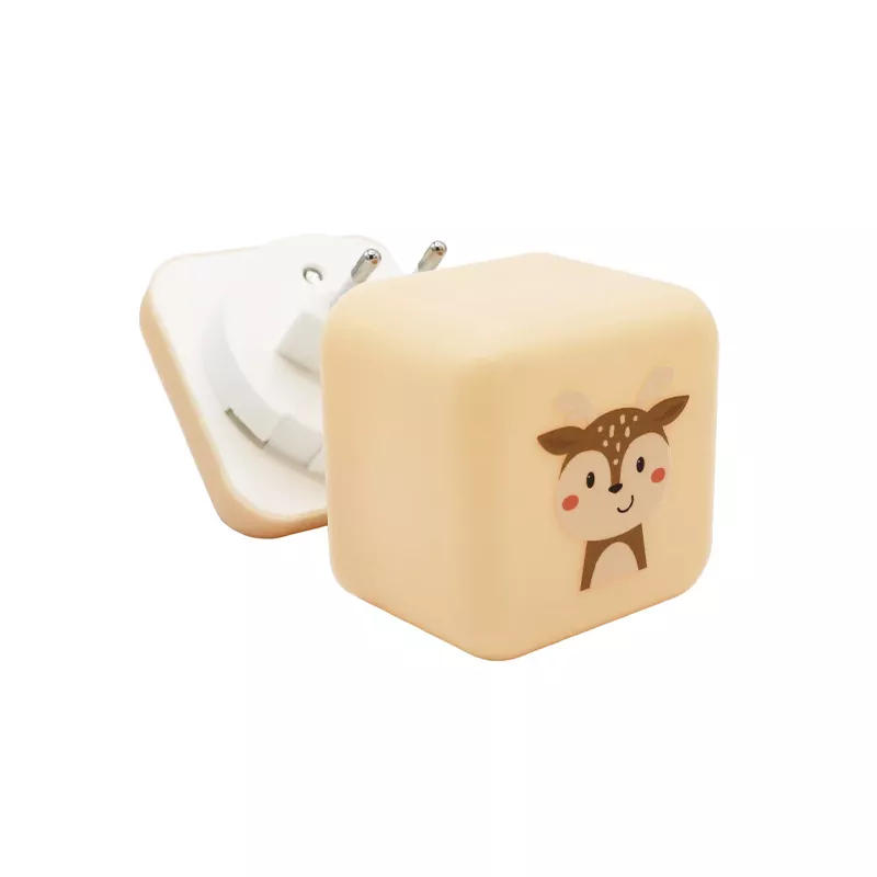 - Luz nocturna con forma de cubo y con una bonita ilustración de un cervatllo.