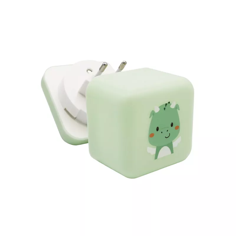 - Luz nocturna con forma de cubo y con una bonita ilustración de un dragón.