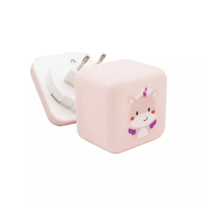 - Luz nocturna con forma de cubo y con una bonita ilustración de un unicornio.