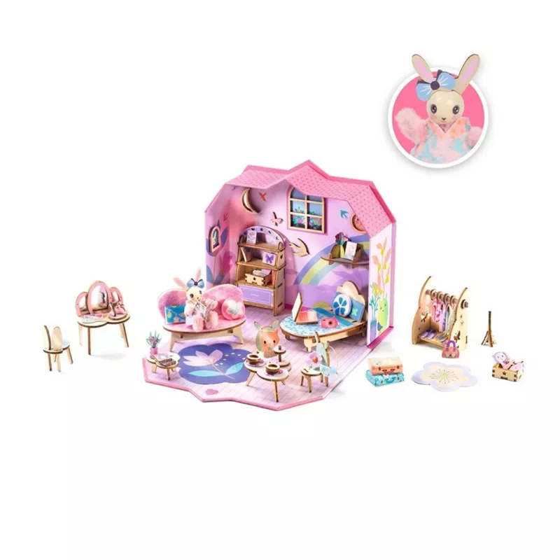 - Un set con todo el material necesario para crear una casita con muebles, decoración, accesorios y un muñequito Rosie.