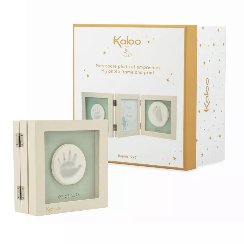 Este bonito marco de tríptico de madera 17cm permite inmortalizar los primeros momentos del bebé. Contiene todo lo que necesitas para guardar un recuerdo para toda la vida. Podrás poner una foto de tu bebé y realizar a la vez las huellas de sus manos y sus pies. Con el kit de moldeado en arcilla incluido, podréis realizar las huellas fácilmente y de forma segura. Una vez creado, podrás decorar su habitación con él. Un regalo para recién nacido, original y de lo más especial.