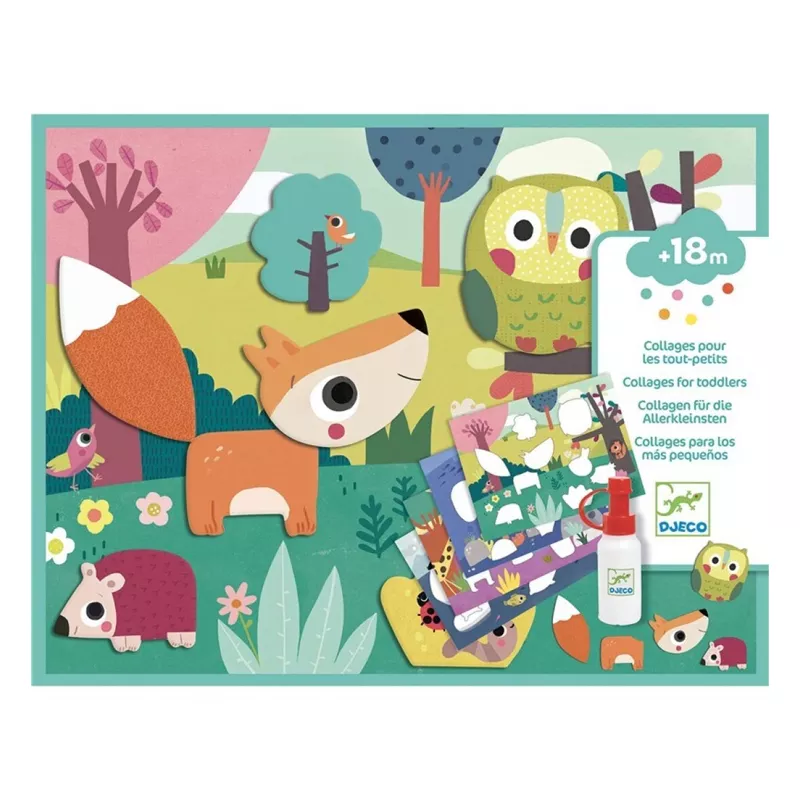 ¡Cuatro láminas de paisajes para decorar con animales adorables! El bosque, el ártico, la sabana y el océano. ¿Dónde pegaremos el oso polar? ¿Y el erizo? Una primera manualidad, con figuras troqueladas, para crear bonitos collages pegando cada parte en su lugar correspondiente. ¡Fácil y divertida!A partir de 18 meses