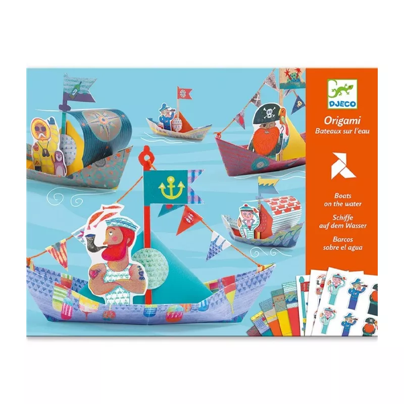 ¡Marineros! Este estuche de origami sirve para hacer 15 barcos de papel. Siguiendo las instrucciones del cuadernillo, los pequeños aprenderán a doblar las hojas estampadas para hacer sus embarcaciones y luego las podrán personalizar con los accesorios incluidos: marineros, banderas, guirnaldas y mucho más. Y lo mejor de todo es que ¡el casco de estos barcos es resistente al agua para poder hacerlos flotar!De 7 a 12 años