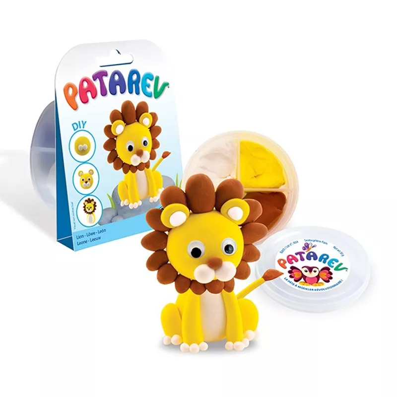¿Quieres aprender a crear un león con Patarev? Dentro de esta pequeña caja encontrarás todo lo necesario para crearlo: pasta de colores Patarev, unos ojos saltones y las instrucciones paso a paso. Patarev es una plastilina revolucionaria: se seca al aire (sin agrietarse), por lo que podrás conservar tus bonitas creaciones. Además, ¡no se pega ni mancha! Puedes hacerla rebotar, añadirle fragancias y mezclar los colores para crear nuevos tonos. Después, podrán jugar con sus creaciones a su antojo. Su textura ligera y elástica es muy agradable de trabajar y animará a todos los artistas, independientemente de su edad, en su proceso creativo.A partir de 5 años