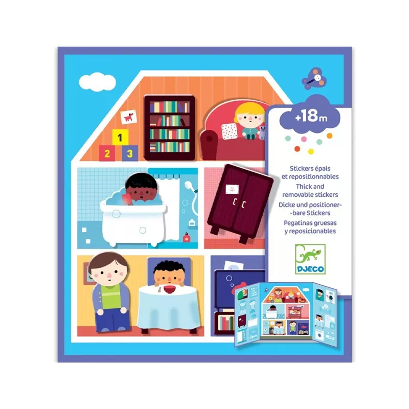 Con este set, tu peque disfrutará pegando y despegando las pegatinas reposicionables ¡tantas veces como quiera! Abre el decorado para que pueda descubrir la casita, con sus habitaciones y las pegatinas de muebles. Podrá decorar cada habitación, combinando las pegatinas como más les guste. ¡Con pegatinas gruesas perfectas para las manitas más pequeñas!A partir de 18 meses