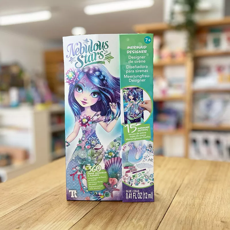 Producto nuevo pero con caja muy dañada. IMPORTANTE: el material de bisutería y las colas están en perfecto estado, pero las láminas de sirenas para vestir están dobladas.