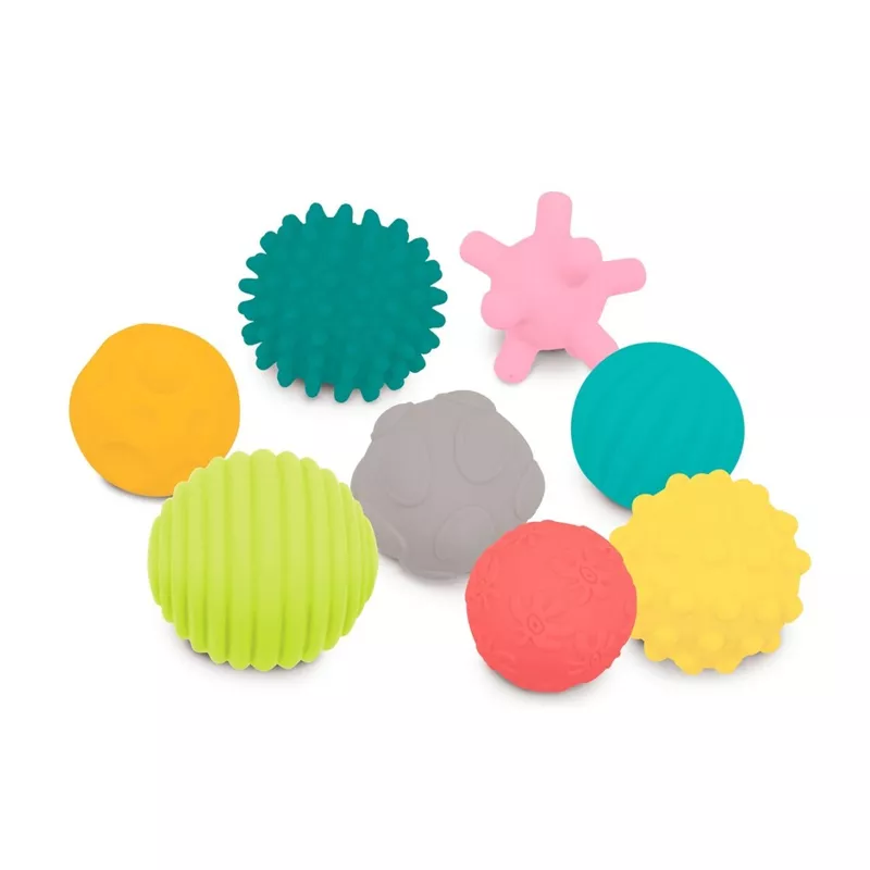 ¡Descubrir formas y texturas nunca había sido tan divertido! Acanaladas, lisas o con púas, grandes o pequeñas, todas las pelotas estimulan el sentido del tacto, la destreza y la coordinación de movimientos del bebé. Con un tamaño pequeño y fácil de manipular para manos pequeñas.A partir de 6 meses
